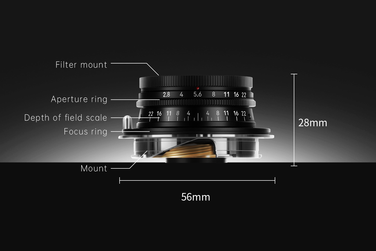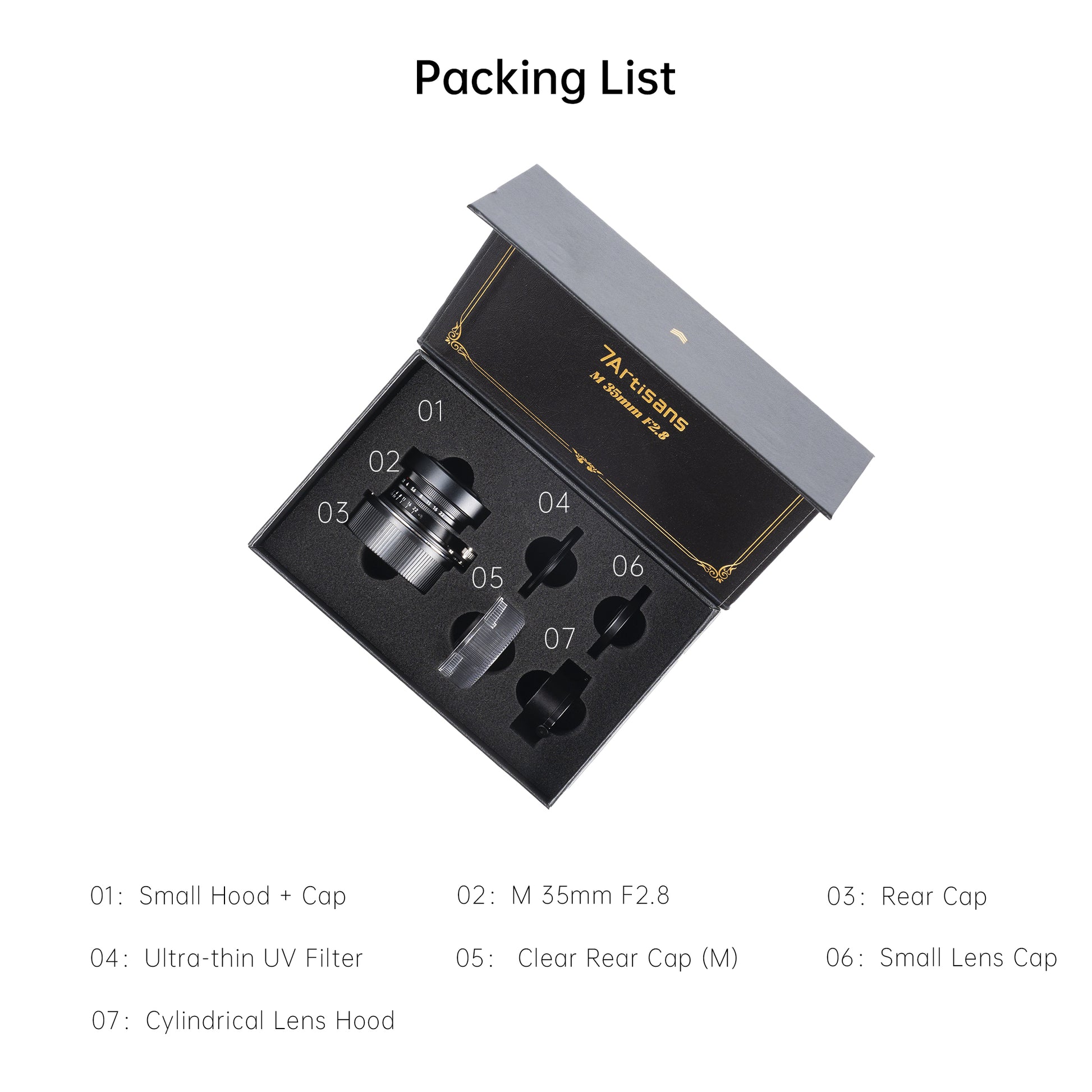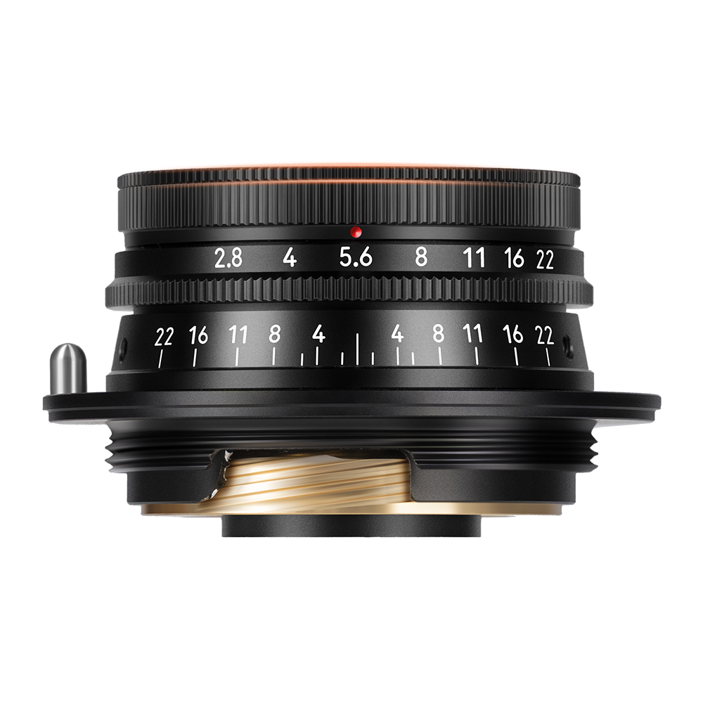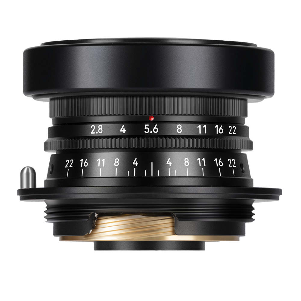 The lens uses a 34mm filter thread and comes with a custom ultra‑thin protective filter. Thanks to its slim 20mm profile, even with the included all‑metal cylindrical lens hood, it barely blocks the viewfinder of any rangefinder camera – ensuring a pure composing experience.