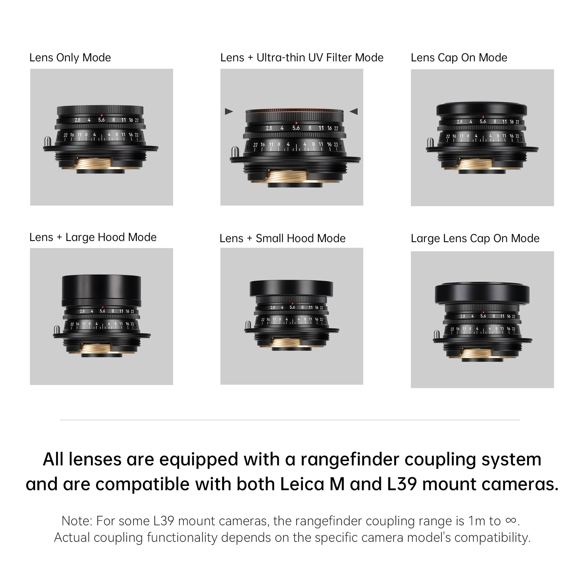 The lens is precisely calibrated for full coupling from 0.7m to infinity on M‑mount bodies (depending on the camera model; some L39 bodies couple from 1m to infinity – please refer to your camera’s specifications). Thanks to our native M/L39 integrated design, there is no tolerance error caused by an adapter, ensuring high accuracy.